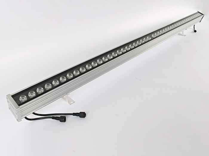 应用较多的LED洗墙灯基本上是选用1W大功率LED管(每个LED管会带有一个由PMMA制成的高光效透镜,其主要功用是二次分配LED管发出的光),呈单线排列(二线或多线排列的我将其归为LED投光灯),大多数LED洗墙灯的LED管都是共用一个散热器,其发光角度一般有窄(20度左右)、中(50度左右)、宽(120度左右)三种,大功率LED洗墙灯(窄角度)的最远的有效投射距离为5-20米,其常用功率大概有9W、12W、18W、24W、36W等几种功率形式,而它们的常用外形尺寸一般为300、500、600、900、1000、1200、1500mm等几种,可以按实际工程应用选择不同的长度和功率密度。